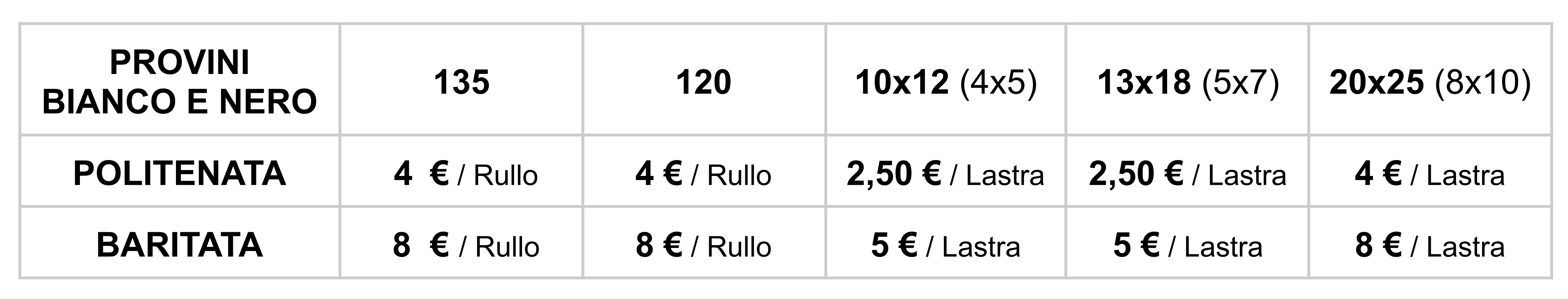 Provino a contatto con contrasto variabile per la valutazione del negativo. Il provino può essere eseguito al contrasto più basso per valutare nel suo insieme il dettaglio contenuto dal negativo oppure al contrasto di “lavoro” più adatto per visualizzare l’immagine finale ottenibile in stampa.