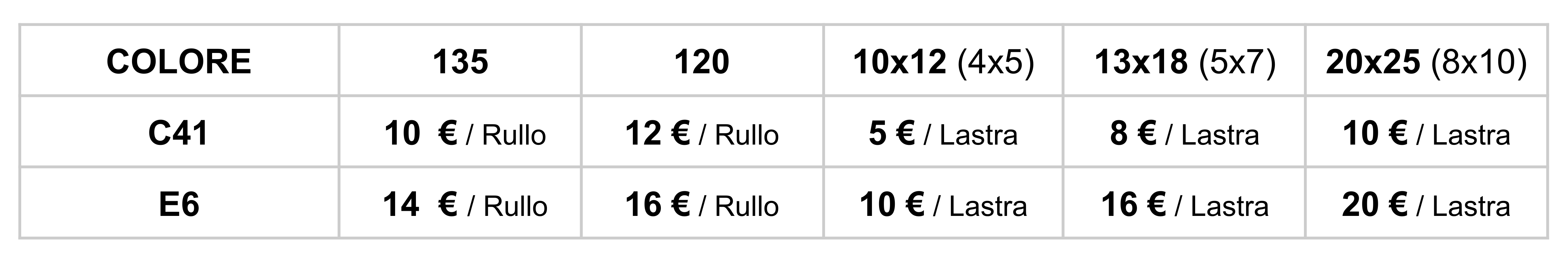 Sviluppo colore per pellicola negativa (C41) e diapositiva colore ( E6 ).